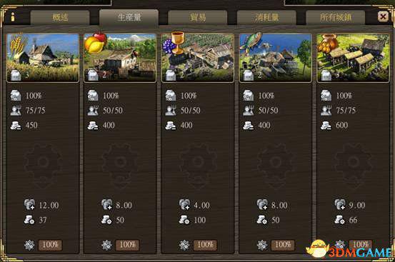 生产量:可以查看产物的生产效率,下面的齿轮可以调节生产效率(调低效率会降低产量和工人,同时降低城市人口)