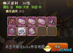 挑战建议,正常情况下,50级转职了的玩家,在补给品正常的情况下,应该可以单挑,至于属性相克,有就行,不强求,幽灵波利&天使波利被击杀后10分钟刷新,有能力的玩家可以在深夜刷一下。