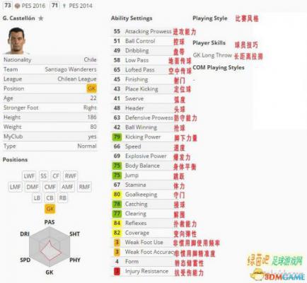来自智利甲级联赛圣地亚哥漫游者的第三门将,能力也是比较强,如果要选一位又便宜已不是很差的门将的话这名球员最适合不过了。
