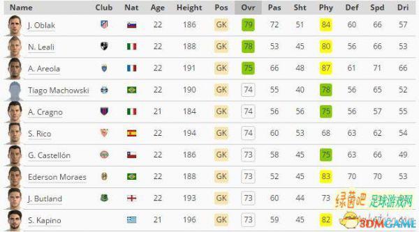 这10名门将年龄都在22岁以下,从年纪到能力,作为年轻球员都是属于比较强大的。