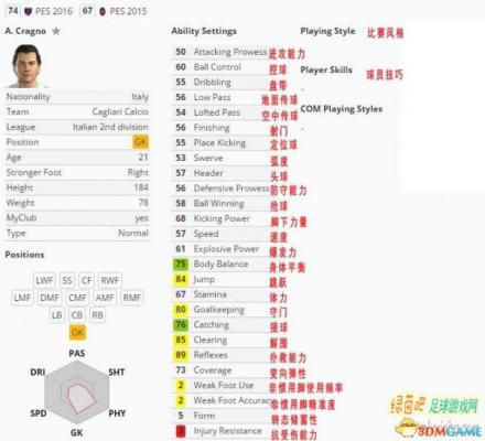 实况足球2016 U22球员推荐之门将篇 PES2016妖人推荐