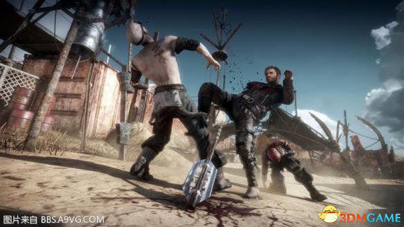 不战斗怎能突出一个疯狂,主角麦克斯以一当十那是家常便饭。游戏没有设定潜行系统,对于我这种喜欢刚正面的再合适不过了,而且每场战斗都是拳拳到肉,超有打击感的肉搏战,这种感觉最原始也最痛快。在《蝙蝠侠》及《暗影魔多》战斗中经典的招架反击系统继续照搬使用,外加通过人物升级解锁出的终结技,感觉麦克斯成了WWE中的摔角选手,各种锁喉、抱摔一气呵成。习惯了这种战斗套路会觉得同时打多少人都能应付,不过也偏于无脑,只要看按键提示就行了。