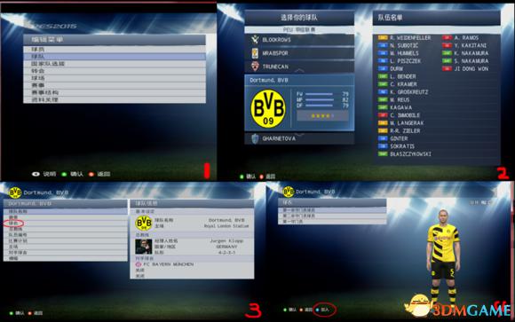 首先讲讲编辑菜单。进入编辑模式后,选择球队(图1),然后选择要修改的球队(图2),就进入了一个球队的修改画面。再次选择球衣(图3)就开始了球服的制作(图4)。这就是有朋友问的5号是干什么的,就是来拿看的。