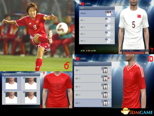 接下来,我以中国女足99年主场球衣的制作,带大家熟悉基本的操作。(图6)选择第一非守门员球员进入球衣选项,开始上衣制作。(图7)
