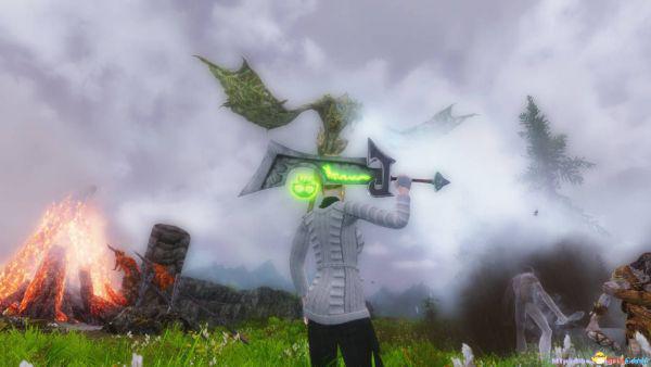 8.就在我把他们打得落花流水落荒而逃以为搞定收工的时候,最终boss来了,一条好大的巨龙,它色眯眯地看着我,我好怕啊。当然啦,这也是小意思啦,因为我其实还干了份兼职——龙裔。