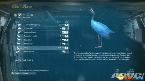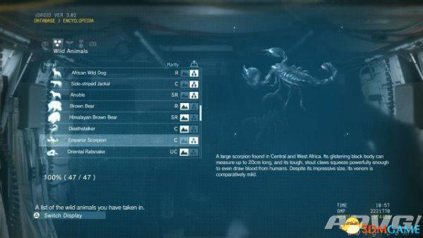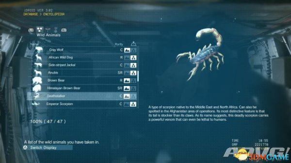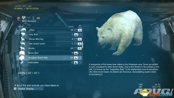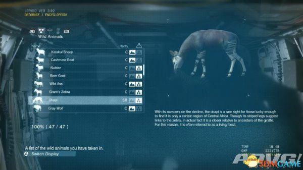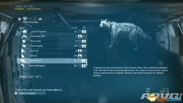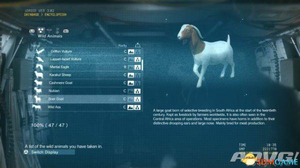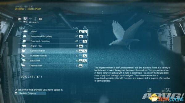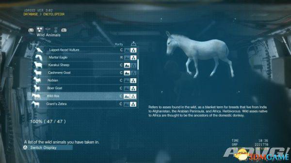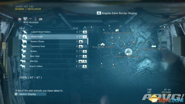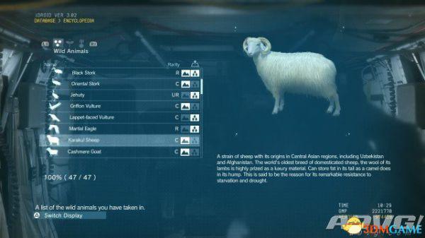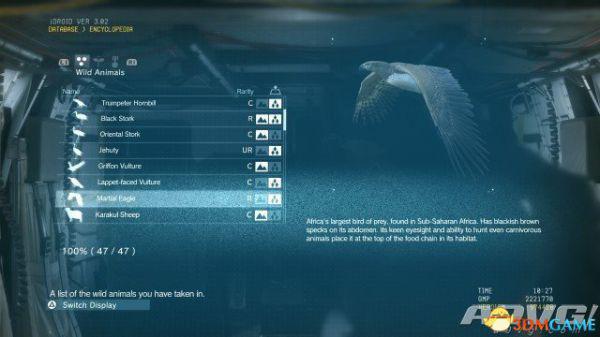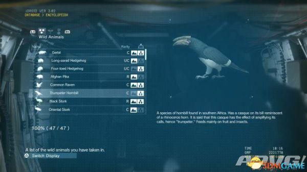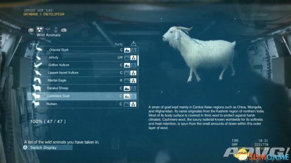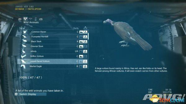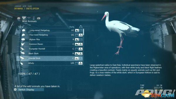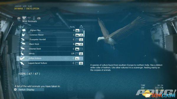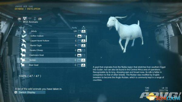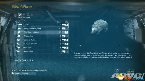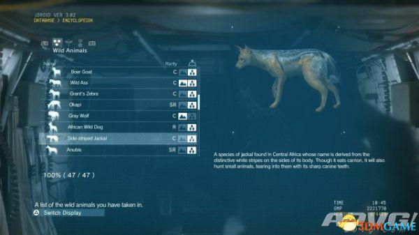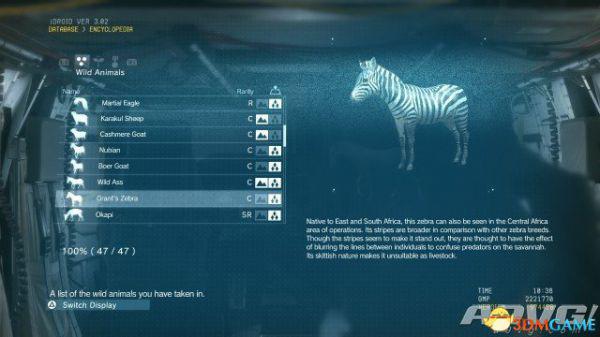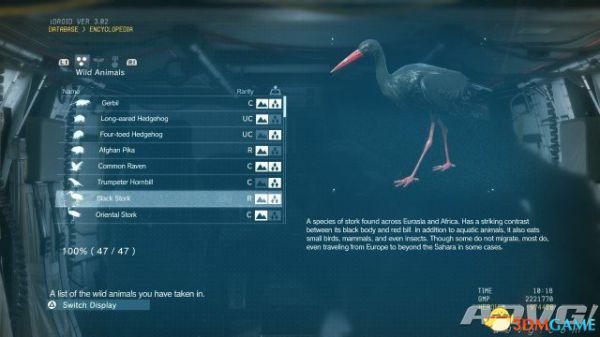在《潜龙谍影5:幻痛》中,共有47种动物可以捕获。完全捕获可以通过丰富Encyclopedia资料来提升游戏的完成率,并获得“Conservation”奖杯与成就。A9VG通过理论资料与实际测试,完整收集全部47种动物并整理捕获方式以供参阅。