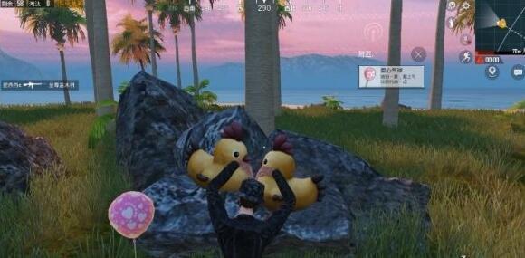 “黄鸡气球”可以在“爱心小岛”的大黄鸡后背上直接拾取。