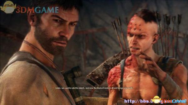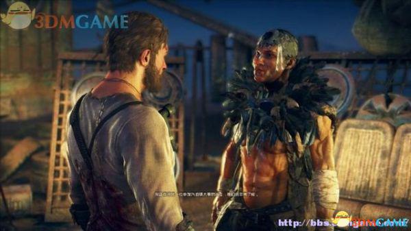 驱车前往死亡竞赛“生命之咬”的地点,见到插着一身羽毛的克劳.达兹,他是这里死亡竞赛的组织者。