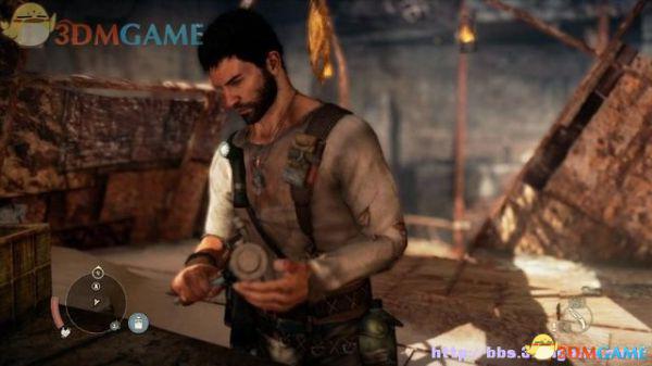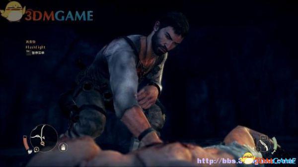 在山洞里搜尸取得手电筒,戴到胸前照明,有了它可探索黑暗区域。