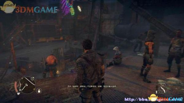 上前和胡姆说话,他说下一步要在车辆上安装鱼叉,有了它可以进入很多隐秘的场所,并且在战斗中也用得上,不过麦克斯首先得帮忙收集废料。