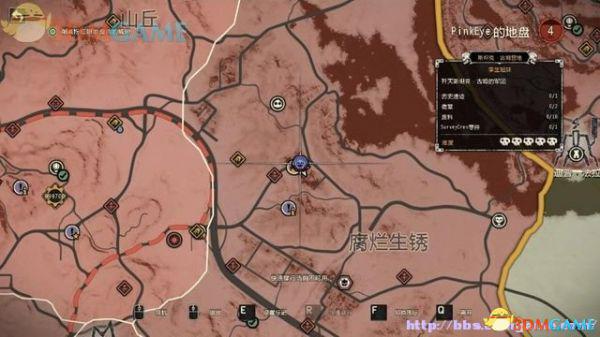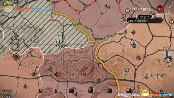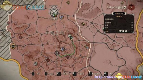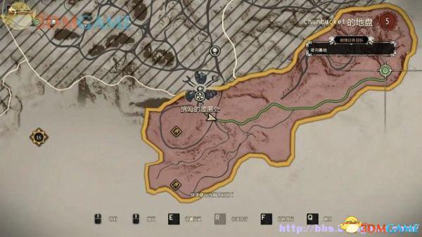 驱车离开胡姆藏身处,往前开不远就会看到雷达地图上出现导航规迹。按Tab切出地图,看到任务目标地点,也可以自己用E键设定行驶终点。