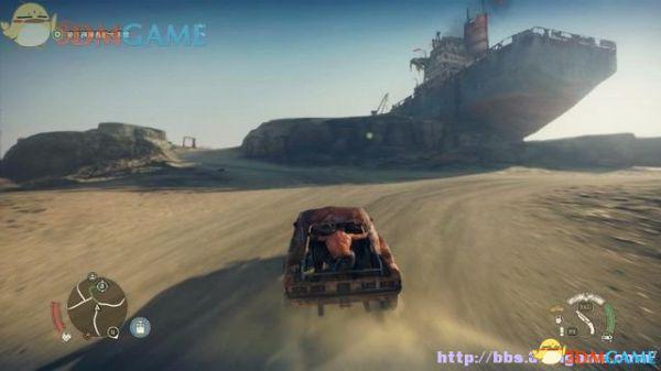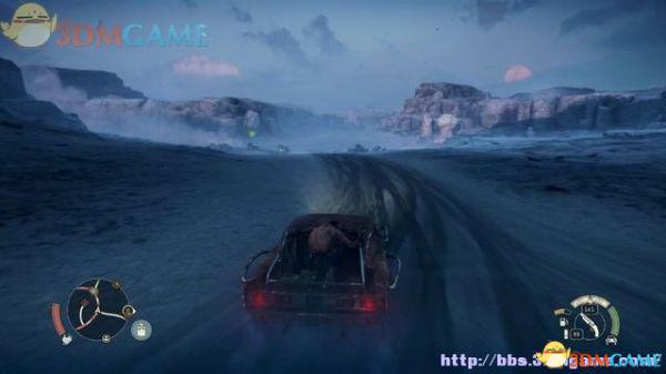 此时的任务目标是“驶进沙丘下部”,但大地图上并没有标注位置,大概很多玩家到这里会不知何去何从。其实离开汽油镇后,只要按照雷达上的小绿点方向往东部行驶。