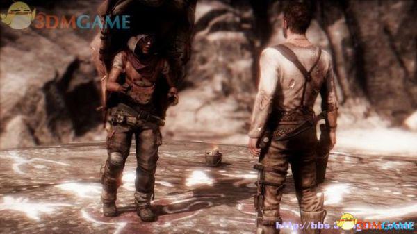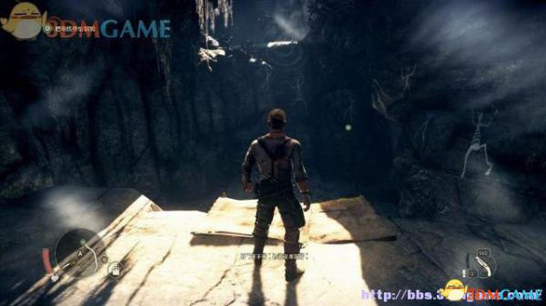 首先进到右手边的山洞,看到洞壁上有道人影一闪而过,就是此前遇到过的那个喃喃自语的神秘人。穿过山洞到外面的平台,使用滑索到对面山崖的洞穴。