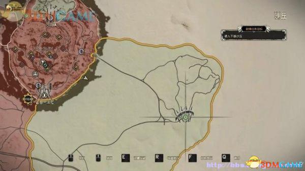 在驶入沙漠地带后,会在大地图上显现目标位置,如图所示。驶上公路线,就可以导航前往了。