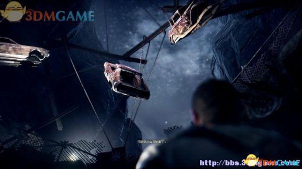 来到峡谷的末端,看到空中悬吊着很多的车身,不过要到达平台的阀门那里费点周章。
