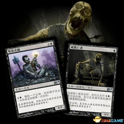 我们来看看两张生物牌,以及它们如何互动。首先是啃食灵俑。