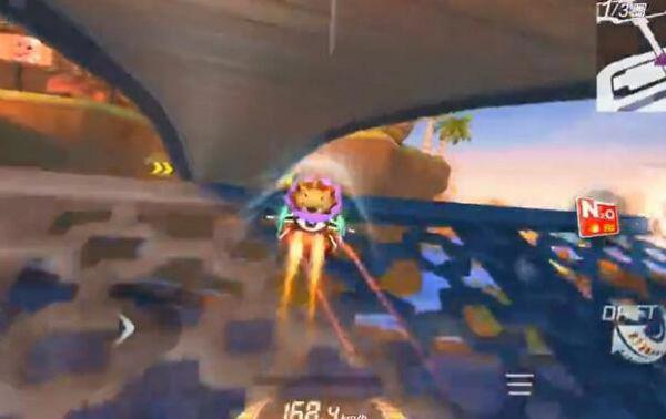 从网上也有一个弹射区,会进入连接的近道,不从弹射区过则会从下面赛道通过。