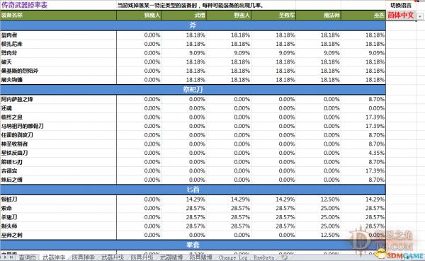 本表根据正式服版本2.3.0.33174的数据,基于《2.2版传奇装备掉率+赌博消耗预期表》更新制作而成。