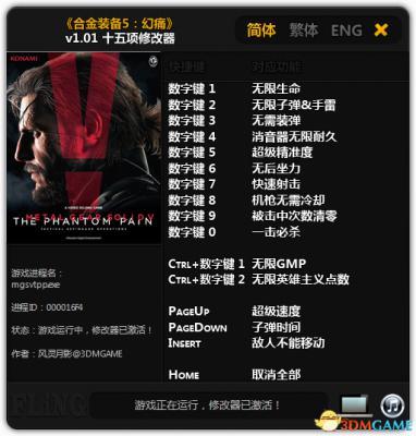 合金装备5:幻痛 无限生命弹药一击必杀秘籍 修改器