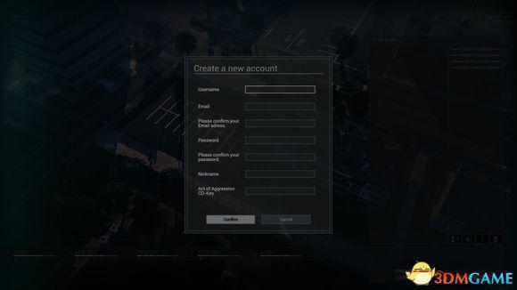 在这种界面,username填你喜欢的用户名,email填你的注册邮箱,please confirm your email adress再次填你的注册邮箱,password填密码,please confirm your password再次填你的密码,nickname填一个游戏里的昵称,act of aggression cd-key这一栏直接CTRL+V把你剪贴板上的KEY粘贴上去,最后,点击confirm确认,收工
