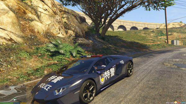 侠盗猎车5GTA5PC版 中国警车版兰博基尼真车MOD