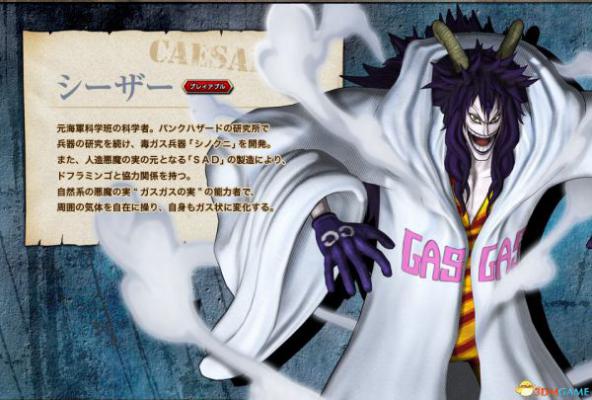 草帽海贼团在新世界登录的第一座岛庞克哈撒德,一般是烈火一半是寒冰的诡异岛屿。凯撒就是这座岛上的最终boss。一个恶心诡异没有人性的科学家。这座岛上除了两个大将战斗之后的场景之外,就只剩下这个可恶科学家的罪恶了。草帽一伙人揭穿了凯撒的伪善面具。瓦斯果实能力者,属于路飞最为讨厌的一类人。还是可怕武器史莱姆的制造者。动漫中目前是草帽海贼团的俘虏……
