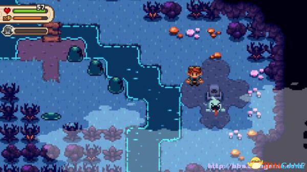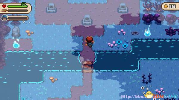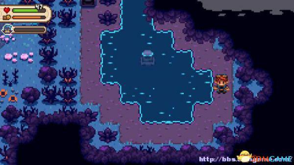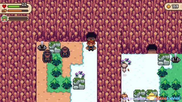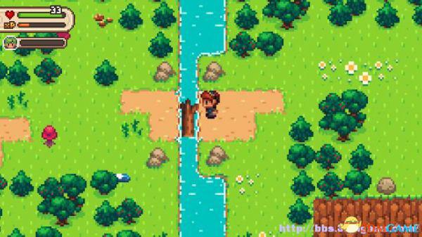 step13.然后往南部推进,到底南端是,河流旁会有两根枯木,先将南北向的枯木推入到东面的河流之中,此时可以击败东岸的蘑菇怪获取经验。