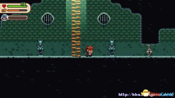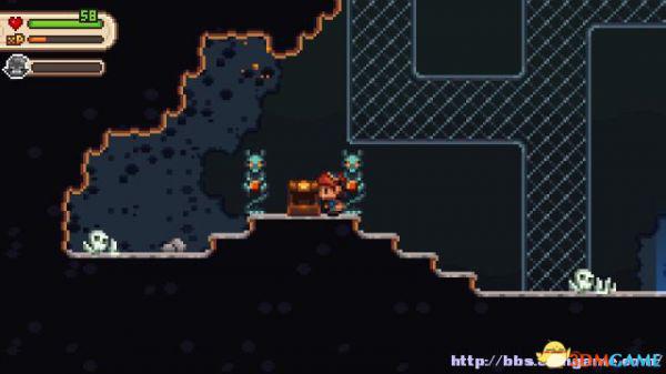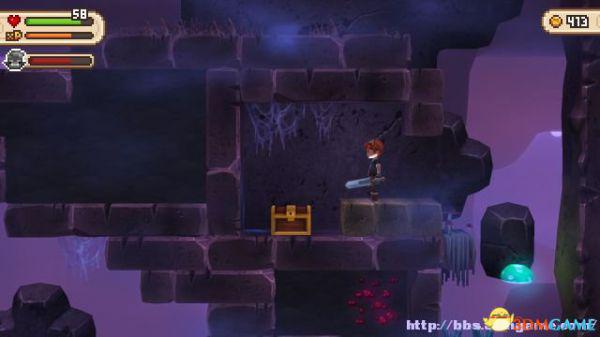 上到上层时击杀左侧的垂吊蜘蛛,上到更上层,可以利用右端宝箱左下方不断弹跳的石头跳到宝箱前,搜刮宝箱后可以获得红黏黏。