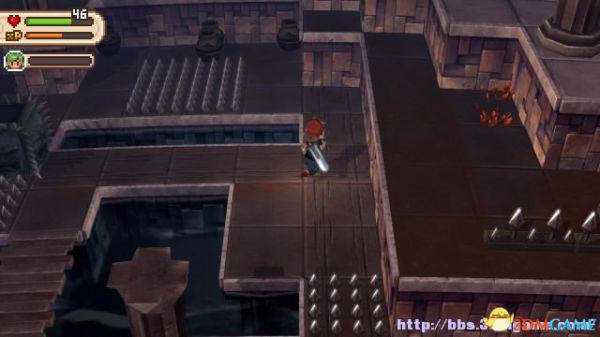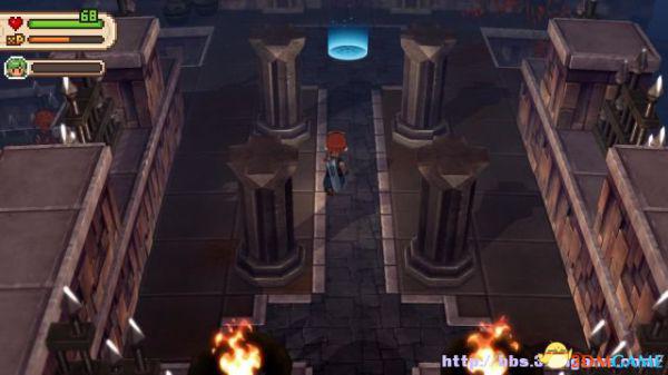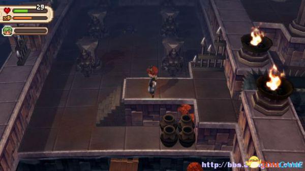 上层有一个巨石挡住去路,使用梅诺思的锤击击破,就可以到达一个存档点。