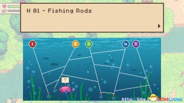 step4.钓叟就在装备铺的南面河岸边,与之对话,得知他的鱼线已经缠绕在一起了,此时要进行一个日本猜线头的游戏。