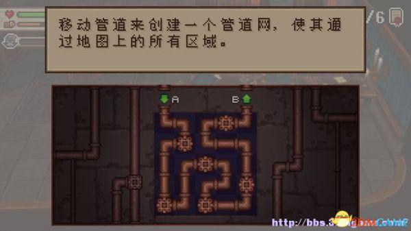 最后将最右侧的管道往东面推去,那么所有管道都拼接上,最后启动左下方的开关,那么沟渠就会填满污水,如果要脱离管道的包围,只需要推开一条管道即可。