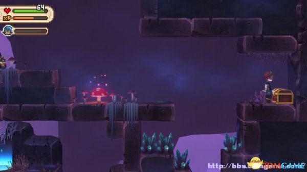 接下来的垂直通道,同样是借助发光蘑菇往上跳。