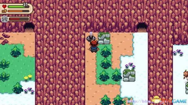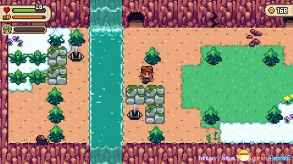 然后将东西向的枯木往北推移,撞碎北面的石墙,然后砍破石墙左侧的树藤,那儿藏着一个枯木,将其推往东面河水当中,形成独木桥前往东面的森林。