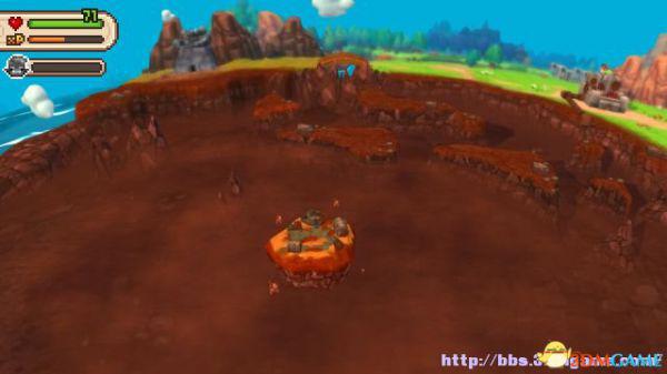 随后会注意到上方有一个宝箱,此时需要从左端的弹弹蘑菇跳到上层,再从上层右侧使用梅诺思的锤击,将宝箱前的石头击碎,然后跳进去搜刮宝箱就可以获得,绿黏黏。
