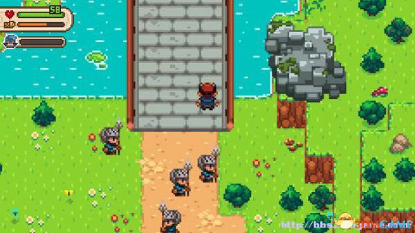 step7.进入森林后,首先会遇到水珠怪,通过西面的木桥后往北面的山坡推进,途中会遇到红色的蘑菇怪。