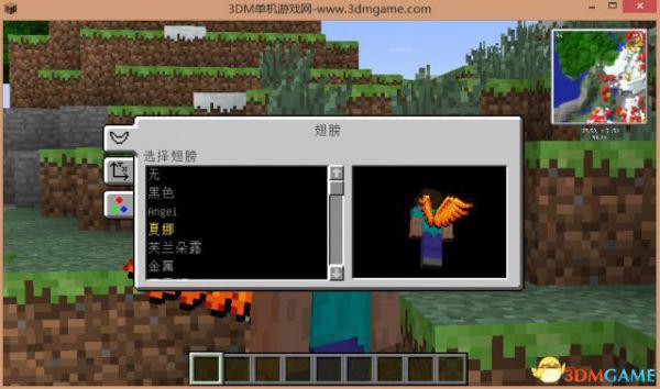 1.7.10自定义翅膀MOD非常有意思,在游戏里按Y键就可以自己选择喜欢的翅膀和颜色。所有的翅膀都有配套的动画效果,比如选择火焰翅膀在移动和站立不动的时候,都会有燃烧的羽毛掉落下来。非常华丽!