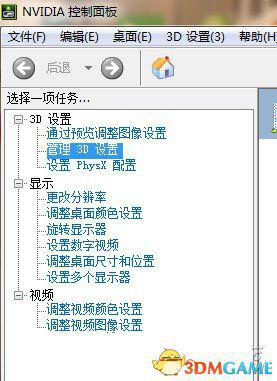 以下是N卡设置:控制面板,打开“nvidia控制面板”点击“管理3D设置”