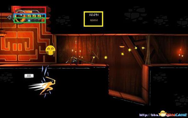 左侧红框是忍者生命,蓝框为手里剑数量。