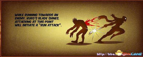 当主角跑向敌人时,会有短暂的时间忍者刀会闪光。