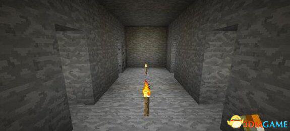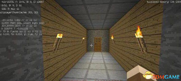 这运气也太差了吧,刚开始就挖到岩浆,挖到11层以后,稍微装饰一下,将来在两边可以开工作室,从木门进去再开矿,因为时间不够,可以看到我是拿创造挖的。
