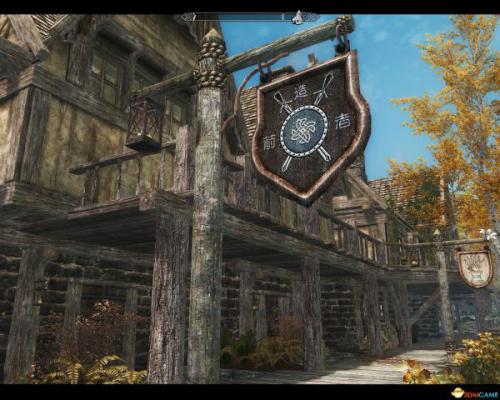 奉劝你们别在镇上闹事,不然就会像《功夫》里面的周星驰进了猪笼城寨——里面高手如云啊,这正是这个MOD的另一个亮点,除了附魔、扒窃、开锁,这镇上拥有其他所有技能的大师级训练师,他们或是商人,或是学者,或是居民,但都很友善,要学法术自然应该去法师公会,公会里面的场景相当精致,人物也有气势,