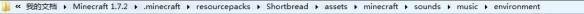 打开你的材质包:resourcepaces/XXX/assets/minecraft,在minecraft文件夹下创建‘sounds’文件夹与‘sounds.json’文件,并打开sounds文件夹创建‘music’文件夹。