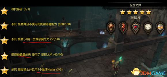 杀死怪物只用一击或恶魔之力:意思就是必须一次攻击完成击杀,可以是普通攻击,也可以是技能或者恶魔能力,但是中途不能中断,否则视为无效。