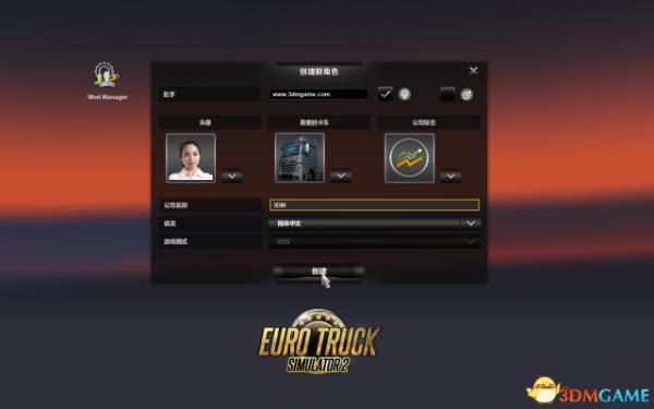 第二步:设置角色名称、公司并点击左上角 MOD Manager(模组管理器)