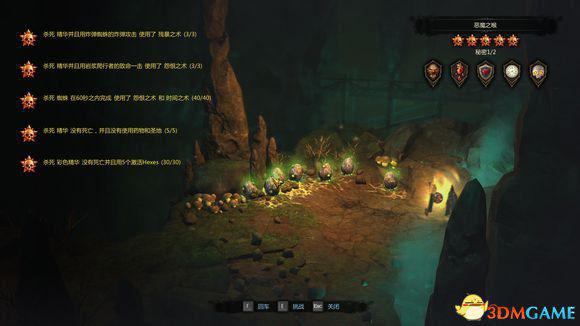 稍微有点难度的是60秒杀蜘蛛, 我还是用阳光过的, 火精华那里一堆卵有15个, 卵状态杀也算, 下去前杀够25个就行, 因为冰精华炮蜘蛛爆炸蜘蛛都会打断技能所以磕个树皮药会好很多