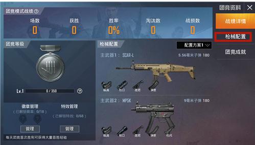 2、进入团竞资料界面,选择第二个枪械配置;