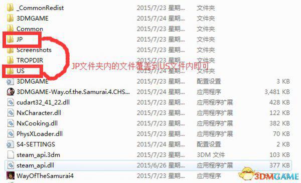 将JP文件夹下的文件复制到US文件夹下变成日文