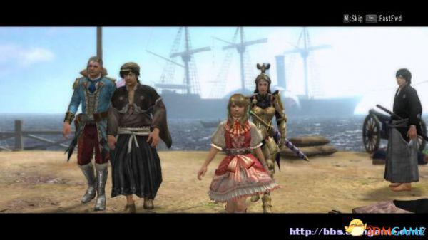 step1.港口上有一群人聚集在一起围观,当中分了两派人,一边是英军,另一边是代管所武士。