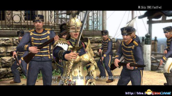 剧情:此时大使萝莉等人登岸却被攘夷志士的领头人赤木给抓住了,而“你”是在场所有人最近这两人的武士,所以众人都把目光转到“你”身上,希望“你”能做点什么(此时“你”可以选择回答“把你的手从她身上拿开”、“你这个懦夫(就懂得欺负女人)”、“让我来处理”)。