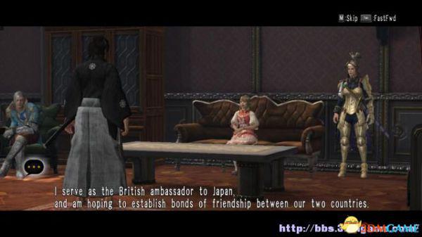 剧情:进入到大使官邸内,伯爵詹金斯期待着“你”的到来,他感觉到从“你”眼神中就能够感受到“你”与他冥冥中的联系,因为他绝对“你”们都非常相似。说了那么多,原来他是有事要拜托“你”,此时“你”可以回答“好,愿闻其详”或者“抱歉,我现在很忙”。原来伯爵詹金斯听说这个国家有种武士叫“辻斩”,他们会无差别地砍杀旁人,为的就是要试剑。他希望“你”可以去杀掉那帮肆意杀戮的人,而且詹金斯也想目睹高水平的剑道对决。